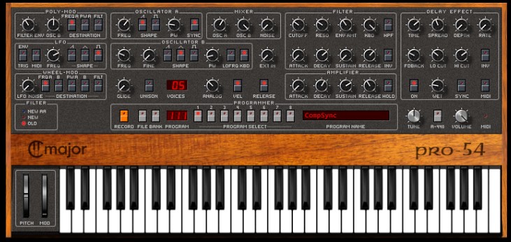 | In 2024 the original developers ported the Pro-53 software to your browser and called it the Pro-54. Looks and works exactly the same, the difference is that you can't save the patches to your computer. Chrome lets you connect to MIDI hardware so you can use your MIDI Keyboard to play the Pro-54.