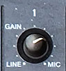 - zet de GAIN knop op LINE voor LINE apparaten, en halverwege voor microfoons. deze knop wordt later in het proces hoe dan ook goed gezet