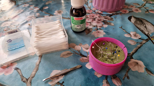 Collect some cleaning things, like 96% alcohol and cotton sticks, a needle and tweezers.