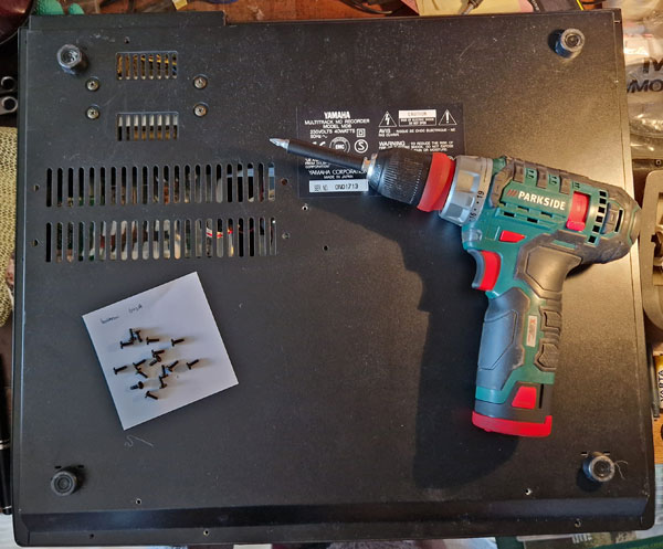 Unscrew the 16 screws from the bottom, as shown in the service manual.