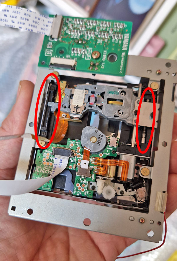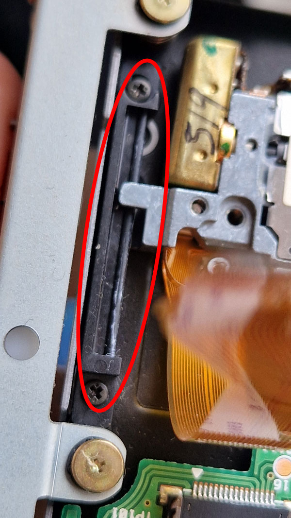 Also remove the orange flat cable from the read head sled. You need to work underneath it.