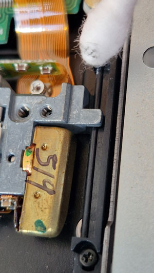 Use the cotton stick, soaked in alcohol and a needle to clean the guidance siders.